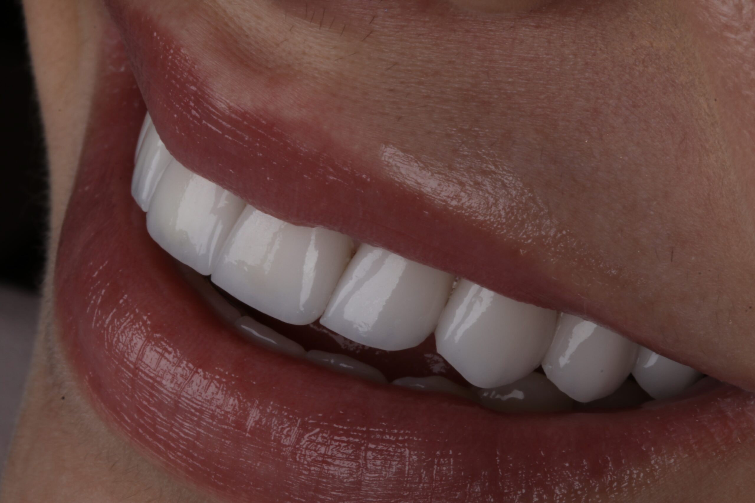 com lentes de contato dentais e próteses.
